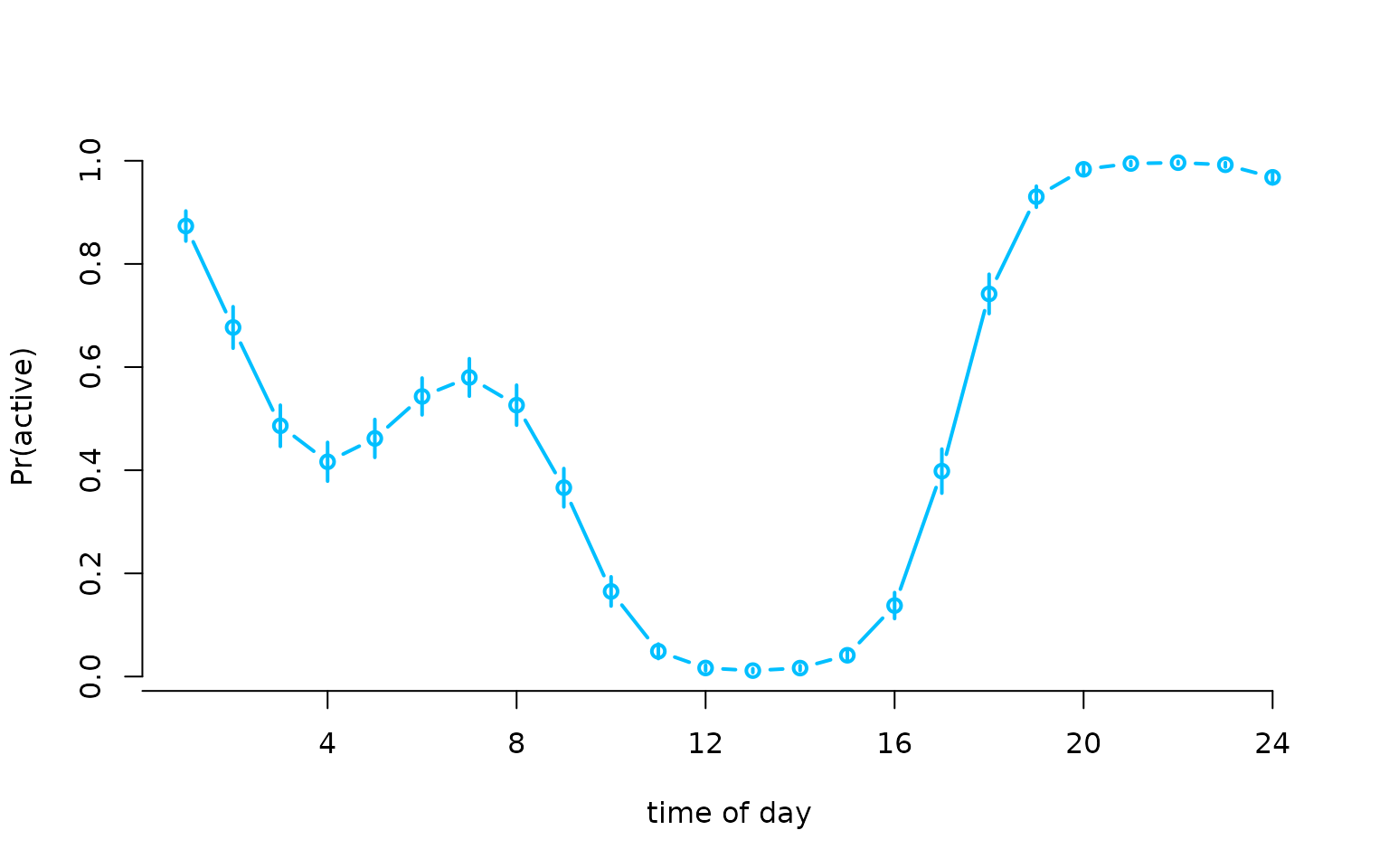 xlab = "time of day", ylab = "transition probability", bty = "n")